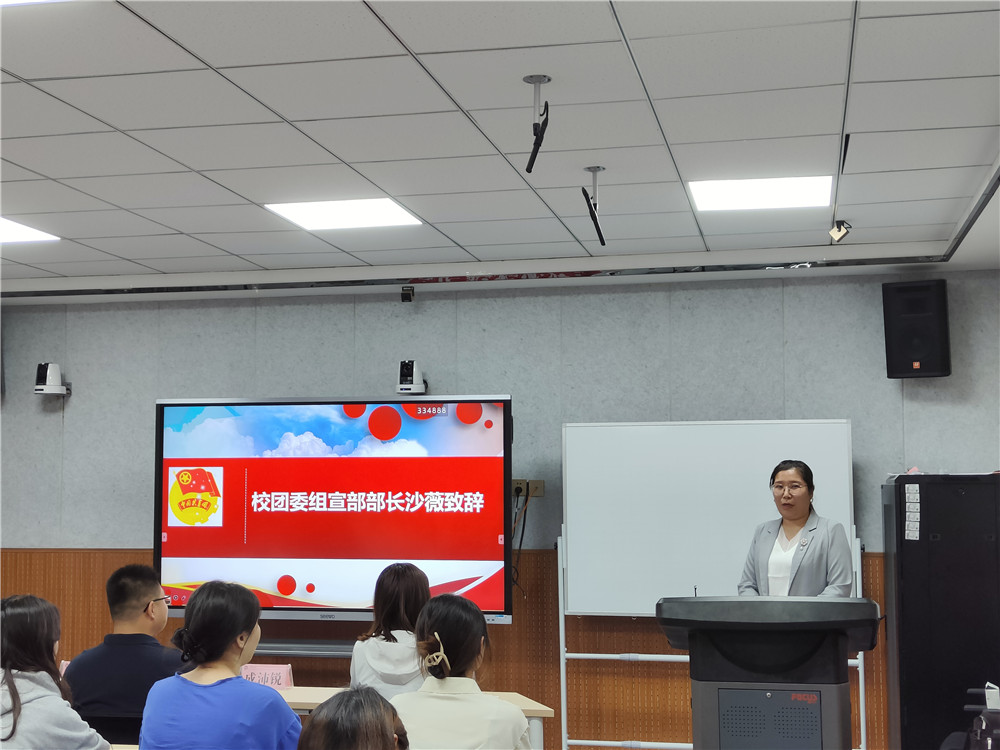 首先,沙薇代表校团委致辞。她要求金沙集团wwW3354CC学生团干部应学好团务知识,持续做好基层团支部建设。接着,对团干部寄予了殷切的期望。最后,她勉励学生团干在自己的岗位上不负组织信任,勤勉务实工作,竭诚服务和联系广大团员及青年。