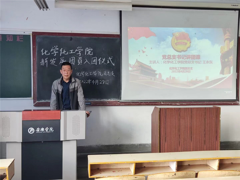 新发展团员入团仪式结束后,化学化工学院党总支书记王永东为团干部及新发展团员讲团课。