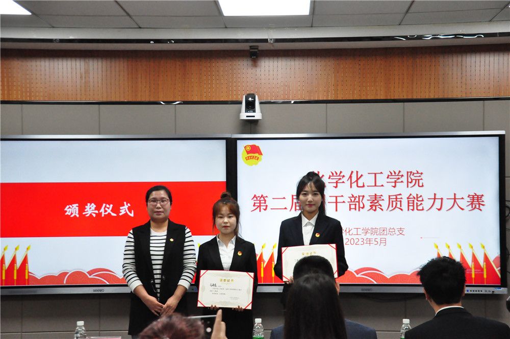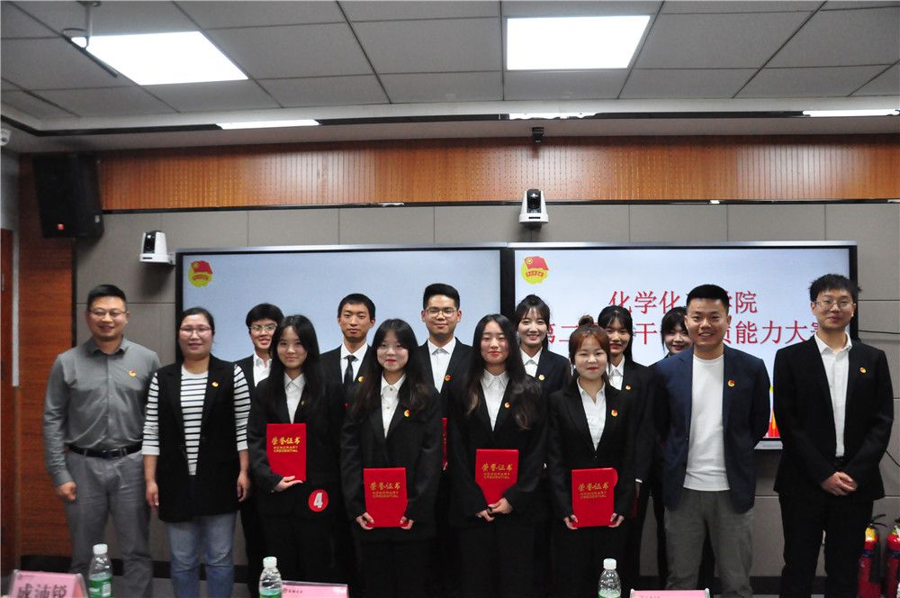 最后,成沛锐公布比赛结果,与会老师给参赛选手颁发荣誉证书。丁悦和李瑞晨获得一等奖,将代表化学化工学院参加金沙集团wwW3354CC第三届团干部素质能力大赛。