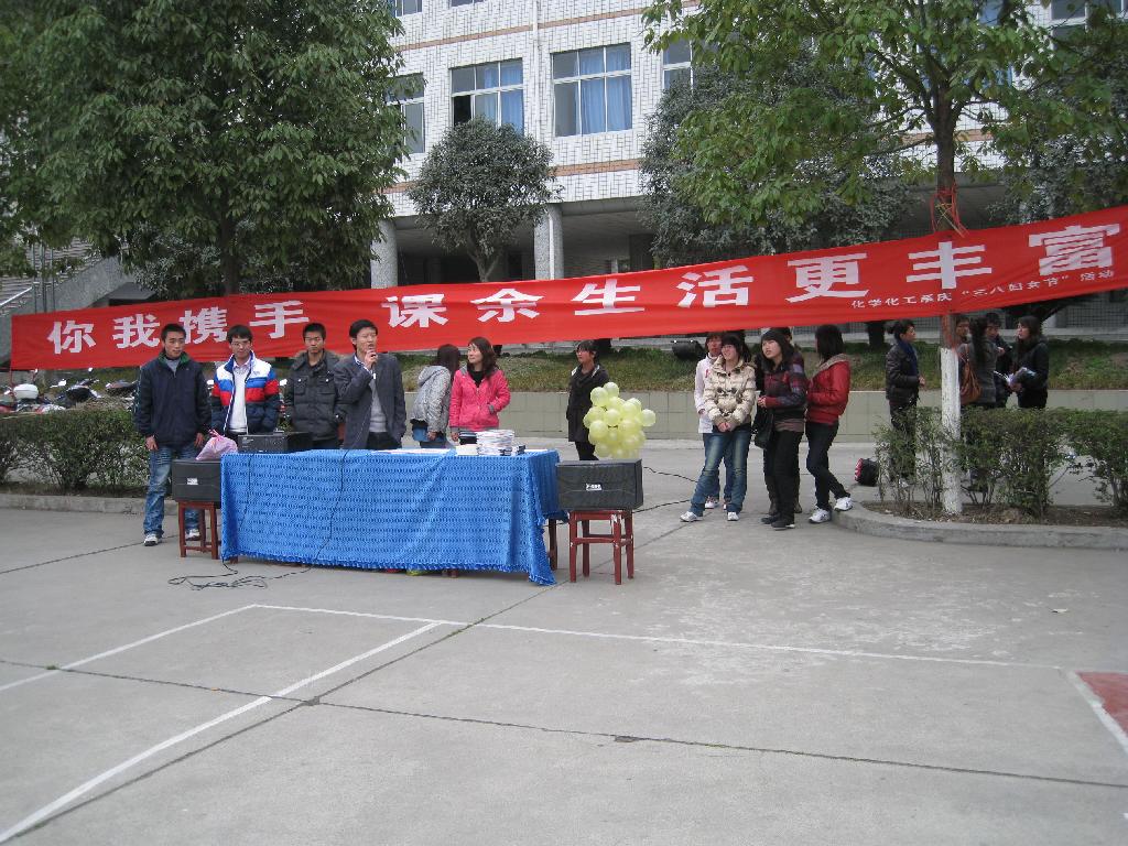在三月,为庆祝“三.八”国际劳动妇女节,系工会分会、系团总支也积极行动起来,利用周末组织全系三百多名女生和教职工,在学院操场开展了丰富多彩的体育活动。