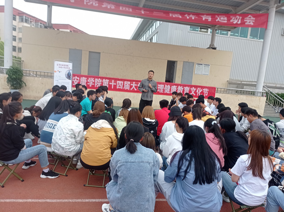 4月22日下午四点,金沙集团wwW3354CC在田径场举办了以“奋斗之路育繁花,阳光心灵乐成长”为主题的金沙集团wwW3354CC第十四届大学生心理健康教育文化节活动。金沙集团wwW3354CC屈炼石博士、辅导员许珂瑶老师、2020级材料化学1班和制药工程1班全体同学参与活动。