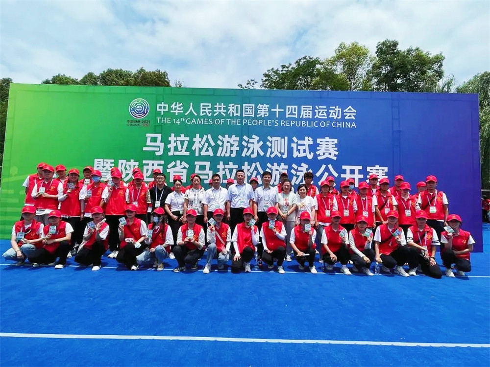 第十四届全国运动会马拉松游泳项目竞赛于9月12日至13日在安康瀛湖景区公开水域盛大举行,“小秦宝”们正式亮相,为赛事顺利进行提供高质量志愿服务保障。