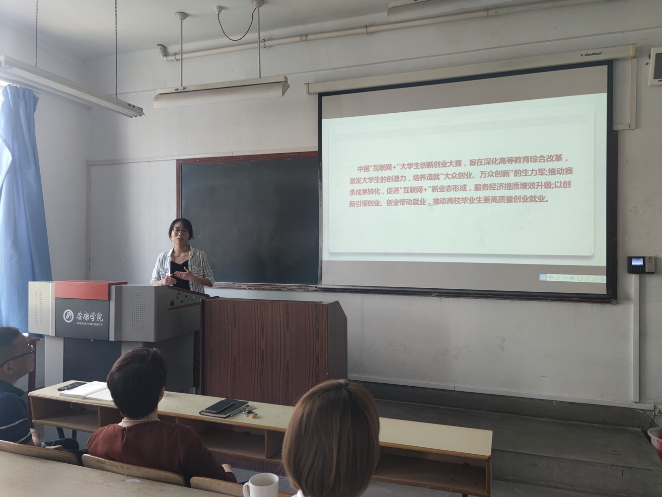 接着,上一届“互联网+”省级银奖团队指导老师张芯、孟现星分别从赛制设置、赛道分类、选题技巧、比赛技巧等方面,详细的介绍了作为指导老师参加“互联网+”的参赛经验,毫无保留地把去年获奖经验、参赛感悟和心得体会分享给全体教师。