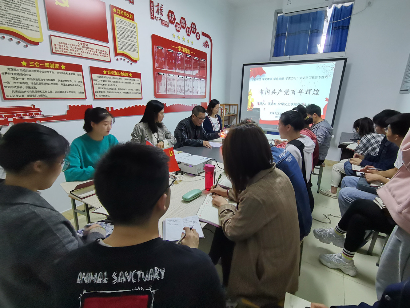 为全面贯彻落实习近平总书记在党史学习教育动员大会上的重要讲话精神,根据学校关于开展党史学习教育工作部署。3月25日下午4点10分,化学化工学院学生党支部全体党员开展党史学习教育专题活动,学院党总支书记王永东为支部师生党员做了专题党课讲座,会议由党支部书记王瑜主持。
