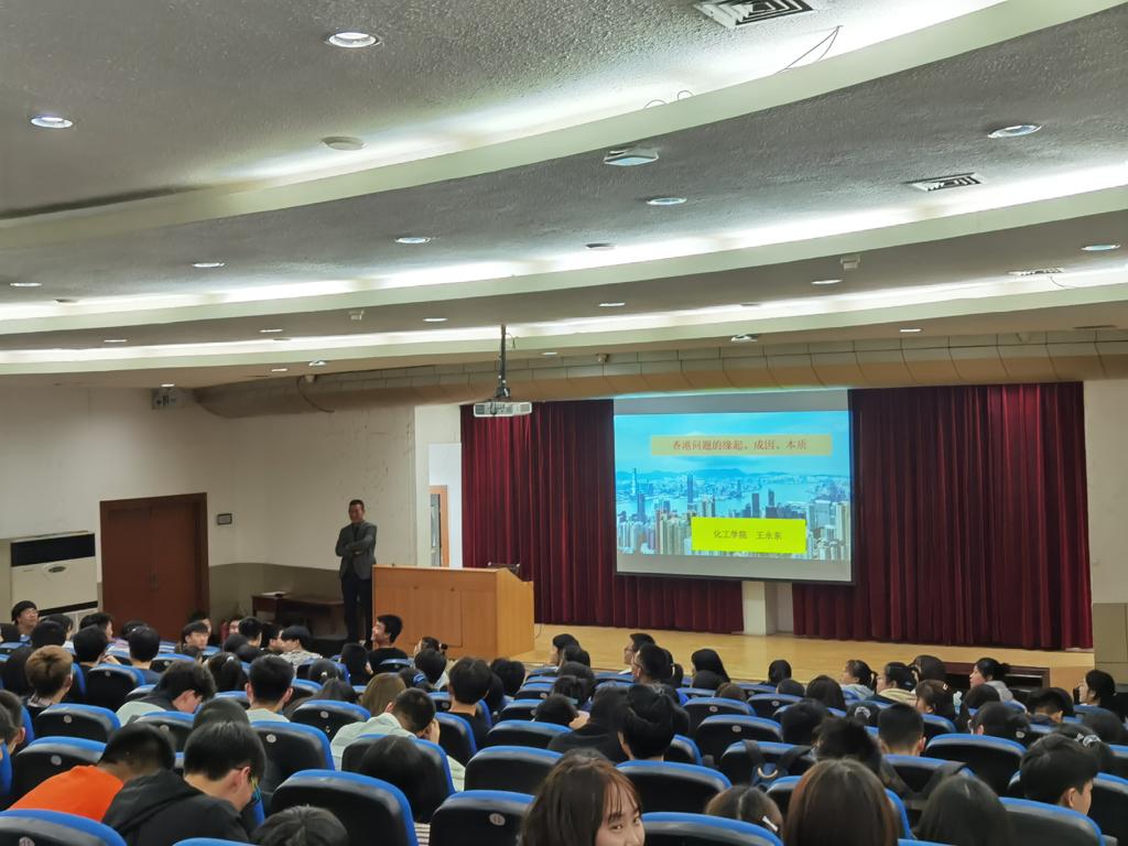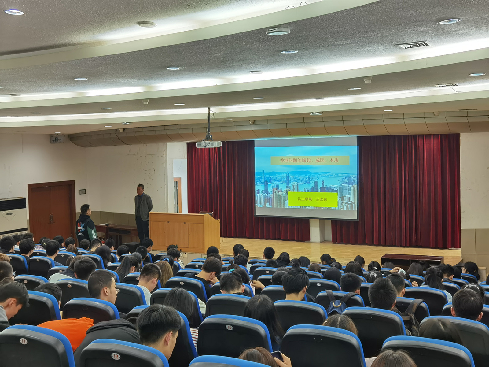 课堂上,王永东老师以香港问题作为切入点,指出爱国主义、国情教育的重要性。分析了香港问题的缘起和本质,分析了香港大学生在事件发展中的负面作用,重点讲解了在当代青年大学生中进行爱国爱党教育的重要意义。
