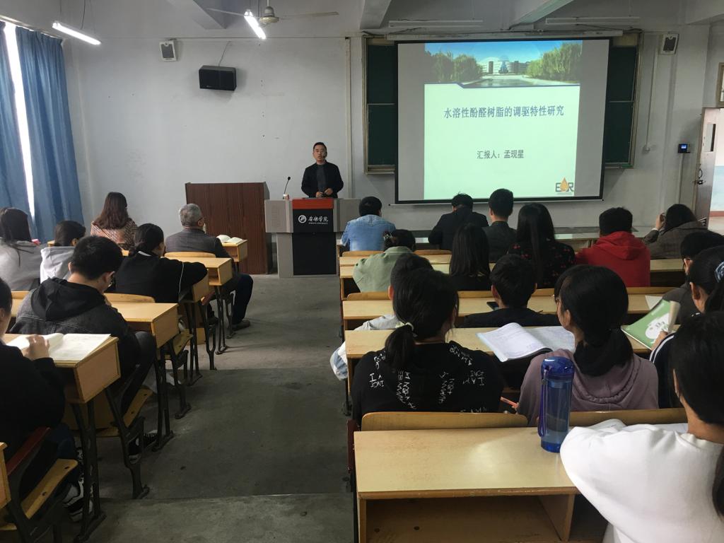 11月5日下午,金沙集团wwW3354CC孟现星博士于江南校区1号教学楼1510教室,为材料化学、化学工程与工艺等专业师生百余人做了一场以“水溶性酚醛树脂的调驱特性研究”为题的学术讲座。