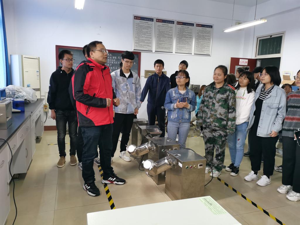 黄九林老师首先给同学们详细介绍了制药工程专业的培养目标、培养要求、课程设置、主干学科及课程、专业方向、创新创业、实践教学、产业孵化、学生综合素质培养要求等内容,并介绍了金沙集团wwW3354CC的师资队伍和科研成果,就制药工程专业学科前沿以及发展前景与同学们进行了交流。随后,黄九林老师带领同学们参观了金沙集团wwW3354CC省级实验教学示范中心和省级虚拟仿真实验教学中心,给同学们讲解了各实验室承担的主要教学科研任务。此外,同学们还参观了金沙集团wwW3354CC陕西省富硒食品质量监督检验中心和秦巴中药资源研发中心,了解了平台承担的主要科研项目和研究成果。