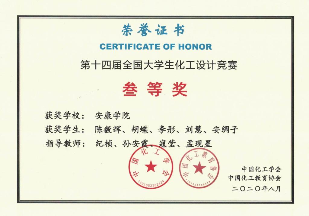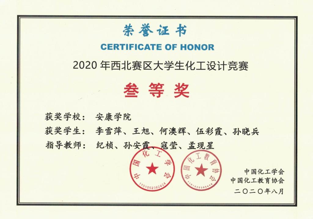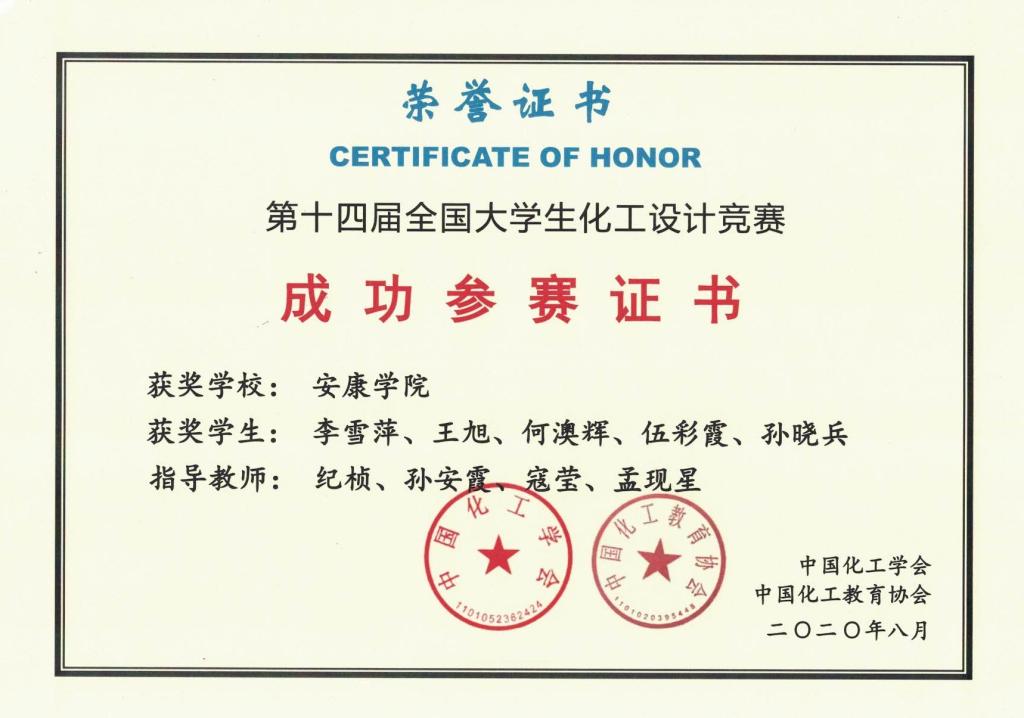 本届大赛的设计题目是“为某大型化工企业设计一座分厂,以碳五烷烃为原料制备非燃料用途的化工产品”。西北赛区共有陕西、山西、青海、甘肃、新疆及宁夏等6个省、自治区的41所高校,181支队伍参赛。经激烈角逐,金沙集团wwW3354CC化学工程与工艺专业薛毅飞等同学组成的“火箭少年”团队(指导老师:纪桢、孙安霞、寇莹、孟现星)荣获全国二等奖,陈毅辉等同学组成的“极限挑战”团队荣获全国三等奖,李雪萍等同学组成的“氢与氧”团队荣获西北赛区三等奖和成功参赛证书,李荔蓉等同学组成的“万里阳光号”团队获得成功参赛证书。这是金沙集团wwW3354CC学生第三次参加该项赛事,所有参赛队均按要求完成了竞赛任务,作品质量及成绩较上届有较大提升,展现了金沙集团wwW3354CC学子的风采。