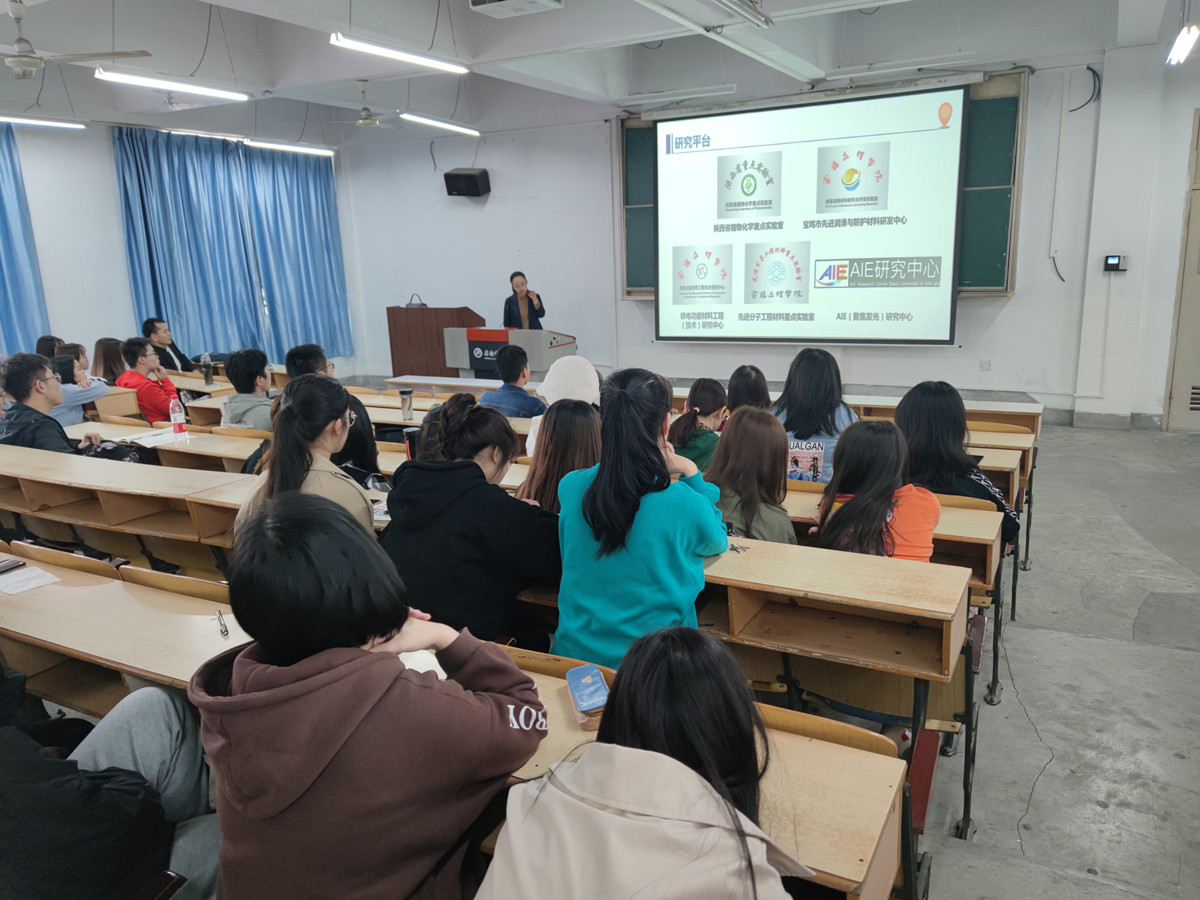 宝鸡文理学院化学化工学院院长凡明锦教授对宝鸡文理学院化学化工学院的发展背景、研究生学科设置、科研团队师资组成、学硕和专硕的科研方向做了详细介绍,着重解读了研究生招生政策、研究生培养情况及招生具体情况。随后,凡教授通过自身的经历和所带学生的案例,以及杰出校友的故事,希望同学们合理定位,理性选择报考院校和专业,积极把握机会。最后,在问答互动环节,凡教授就同学们备考过程中遇到的问题进行了充分交流。