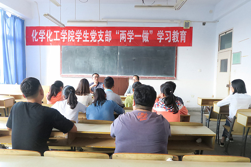 9月22日下午,化学化工学院学生党支部在1219教室开展“两学一做”学习教育暨支部活动,金沙集团wwW3354CC党总支书记谢军老师为学生党支部党员讲党课。学生党支部书记王瑜,宣传委员柳晓燕及金沙集团wwW3354CC学生党员参加活动。
