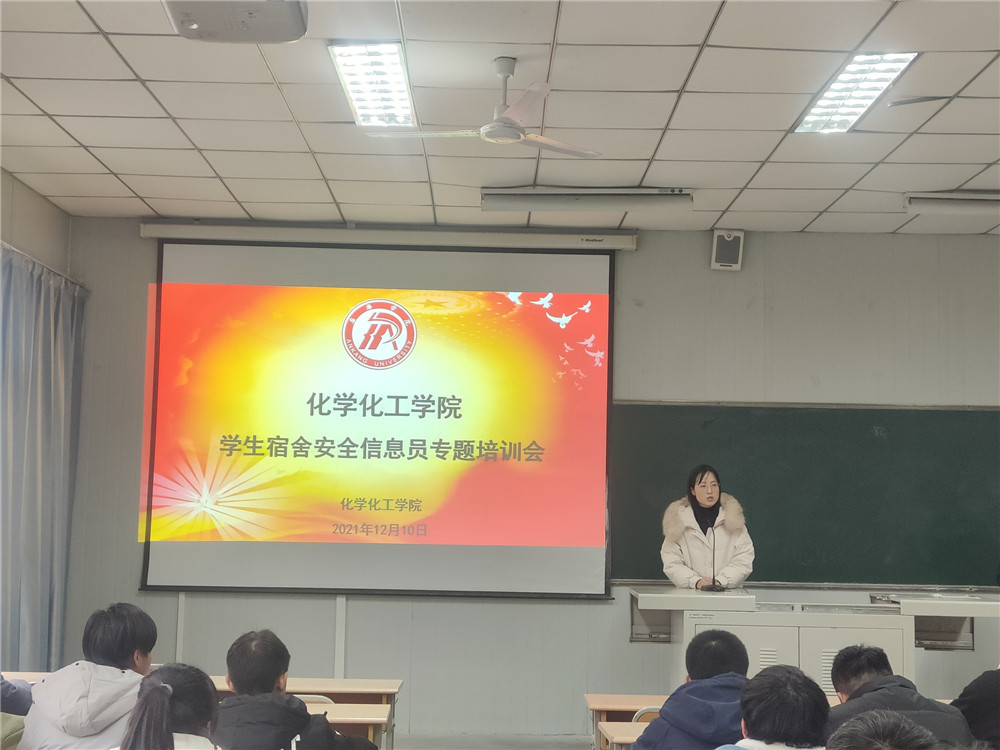 为积极推动“我为群众办实事”活动深入开展,进一步提升金沙集团wwW3354CC学生自我管理水平,推进学生党员、入党积极分子进公寓活动落实落地,提高学生公寓网格化管理水平,营造良好育人环境,维护校园安全稳定。12月10日下午,金沙集团wwW3354CC在10号教学楼1028教室举办了化学化工学院学生宿舍安全信息员专题培训会。本次培训邀请我校大学生心理健康中心主任柯小敏老师为信息员作专题培训,金沙集团wwW3354CC学工办主任王瑜老师和各班宿舍安全信息员参加培训。