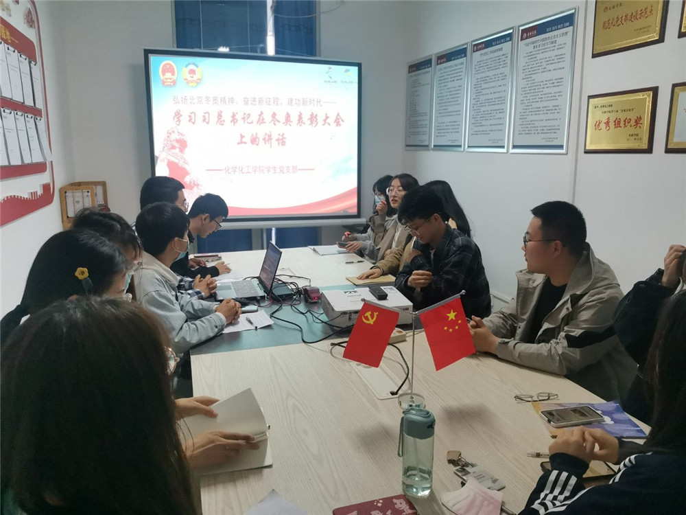 为深入贯彻落实北京冬奥精神,传承深厚文化底蕴,发扬体育精神,汲取奋进力量,4月15日下午4点,化学化工学院学生党支部组织学生党员在党员工作站集体学习习近平在北京冬奥会、冬残奥会总结表彰大会上的讲话精神。会中,大家纷纷发表自己的学习感受。