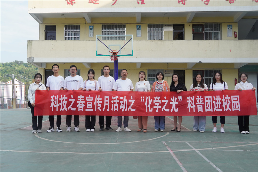 科研报国,作育英才。为激发小朋友们对化学的兴趣,引导青少年探索化学世界的奥秘,助力孩童的科学梦想,“化学之光”科普团于6月1日下午赴汉滨区县河镇财梁九年制学校开展科普活动。参与本次活动的有化学化工学院教工一支部书记、副院长黄婷老师、化工系副主任寇莹老师、刘蓉老师、王雪老师及部分科普团成员。
