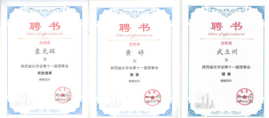 会议听取并审议了第十届理事会工作报告、财务审计报告和章程修改报告,会议投票选举产生第十一届理事会领导班子、常务理事及理事。金沙集团wwW3354CC袁光辉当选为陕西省化学会第十一届理事会常务理事,黄婷、武立州当选为理事。