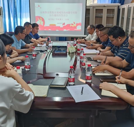 首先,支部书记程昆木向全体党员报告半年来党支部工作情况,总结2022上半年党建工作,其次,领学了《习近平总书记关于教育重要论述》 和《陕西省第十四次党代会精神》文件;然后,党员依次发言,谈学习体会和收获,讲存在问题和差距不足,开展自我批评和批评;最后,化工学院党总支书记王永东同志列举了巡视整改问题清单,剖析了产生问题的原因,对下一步工作改进方向作出了具体部署和安排。
