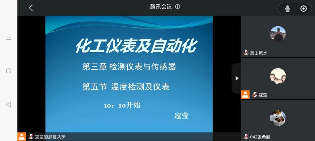寇莹老师讲授的课堂内容“温度检测及仪表”,结合日常生活中的各类电器对各类测温仪表进行了原理讲解,每个知识点后设置随堂小测,实时检查学生对知识的理解和掌握,并通过与学生连麦等方式进行互动,引导学生进行知识点的总结归纳,为大家呈现了一堂精彩的教学观摩课。