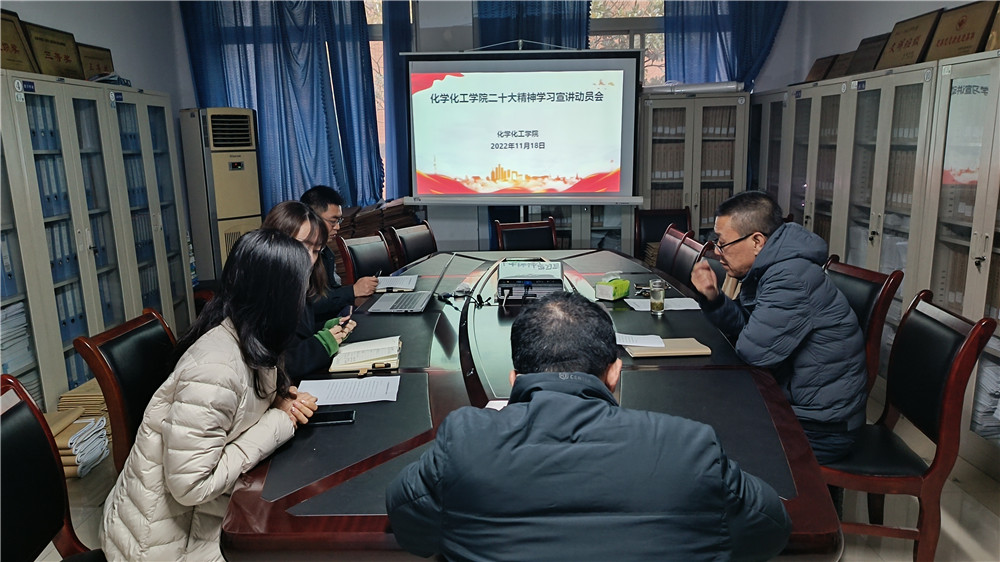 2022年11月18日,化学化工学院在1325会议室召开会议,专题部署二十大精神专项学习及下一阶段宣讲工作安排。