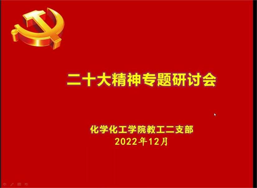 为深入学习贯彻落实党的二十大精神,化学化工学院教工二支部委员会于2022年12月15日线上召开二十大精神专题学习研讨会。