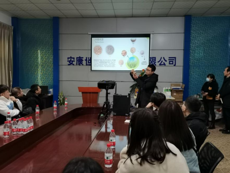 课程实习过程中,安康市金茂生物工程有限公司赵奎山工程师向学生介绍了企业文化、研发平台和生产线等情况。企业技术负责人对肌醇六磷酸等产品的生产制备过程进行了详细讲解并进行产品展示。通过本次课程实习使学生了解到在工业生产中如何让廉价的米糠变为高附加值的化工产品,极大地加深了学生对现代工业化生产的认知。
