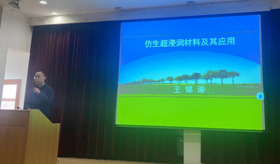 3月24日下午,金沙集团wwW3354CC王锦涛博士做了题为《仿生超浸润材料及其应用》的学术讲座。化工学院部分师生参加了此次讲座,讲座在江南校区1号教学楼六楼报告厅举行。