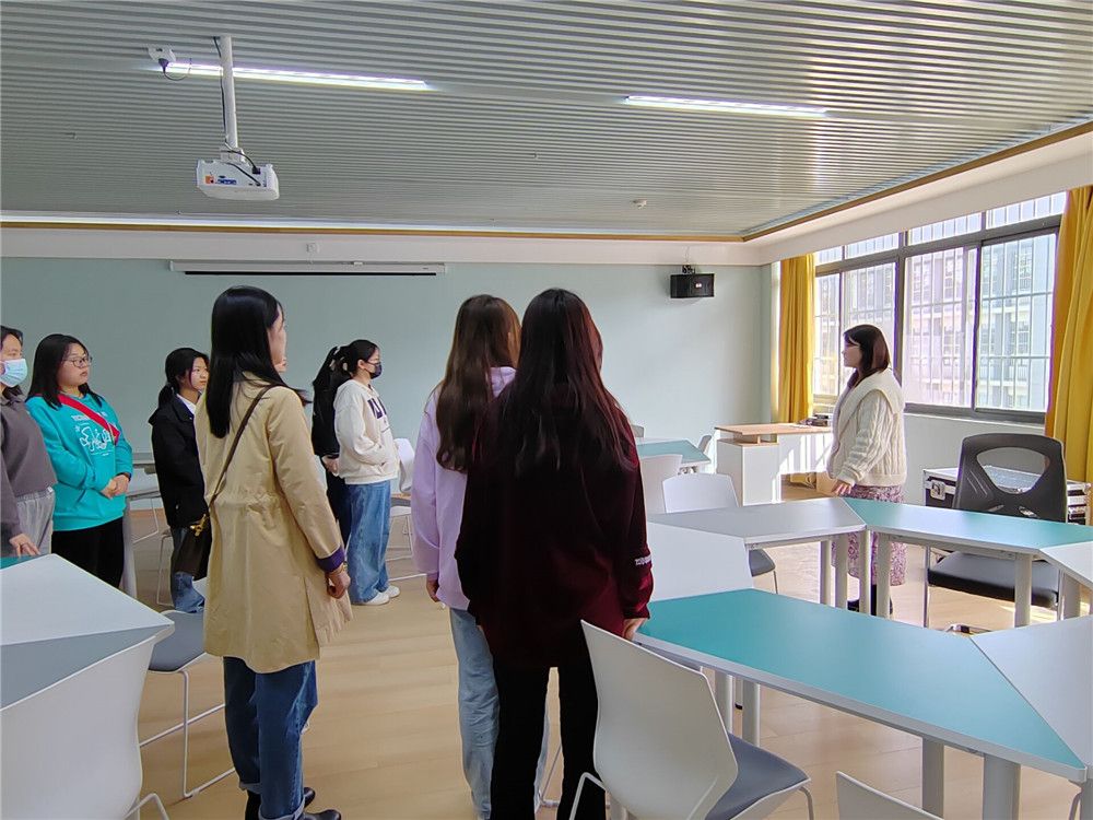 参观过后,柯老师带领同学们来到团体辅导室,就中心近期开展“百人团辅”活动的价值和意义做了简要介绍。希望同学们能在活动参与中了解团辅活动,并更好地关注自身的心理健康状况,也希望同学们能够走进心理咨询,保持健康心态。