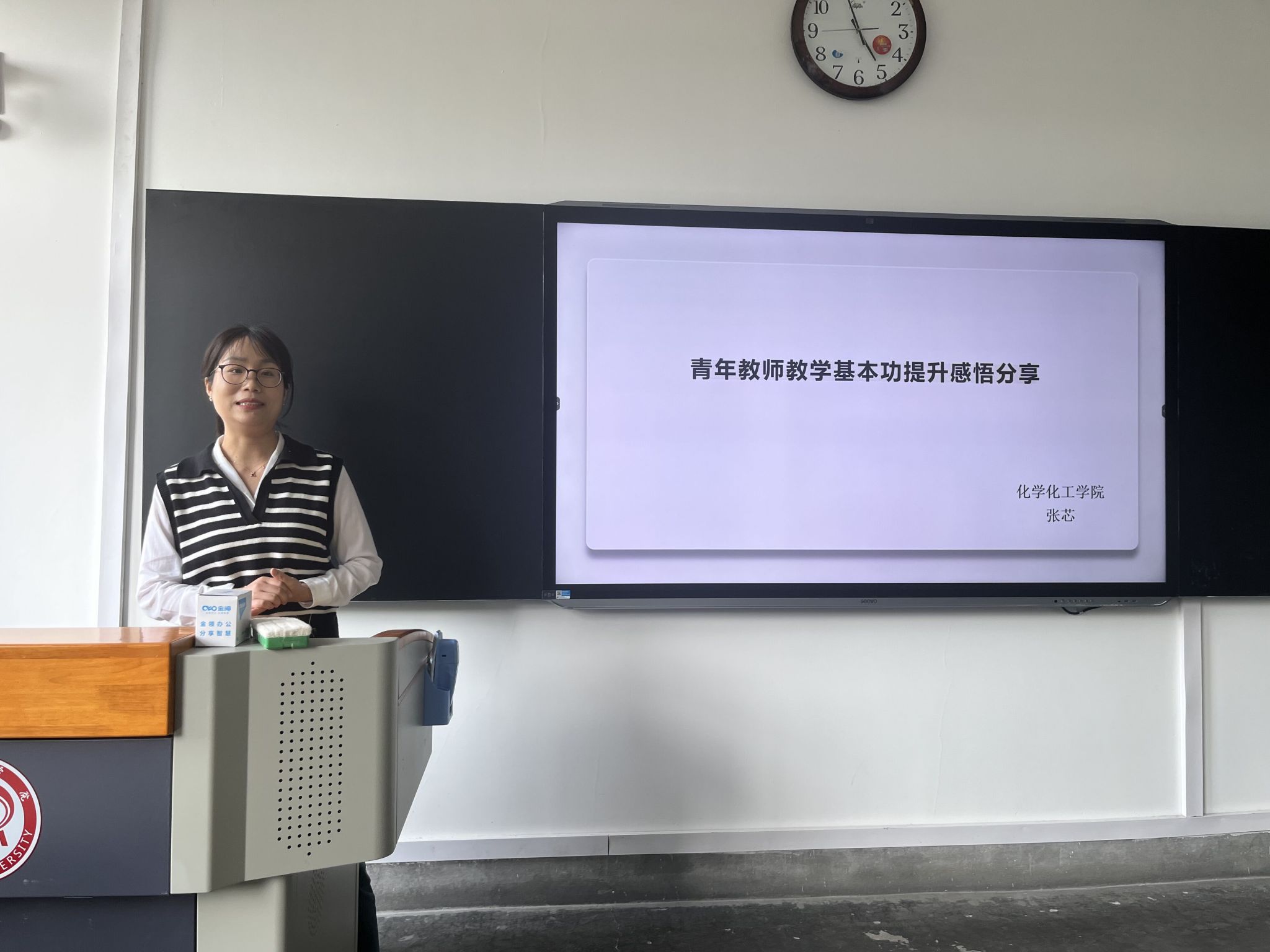 讲座中,张芯老师结合自己近10年的教学经验,以“如何上好一门课”作为主题,分别就如何做好教学设计、授课以及课后反思等教学基本功进行了讲述。讲座最后,教师们就参加赛教中的有关事项、授课技能技巧等展开了互动交流。