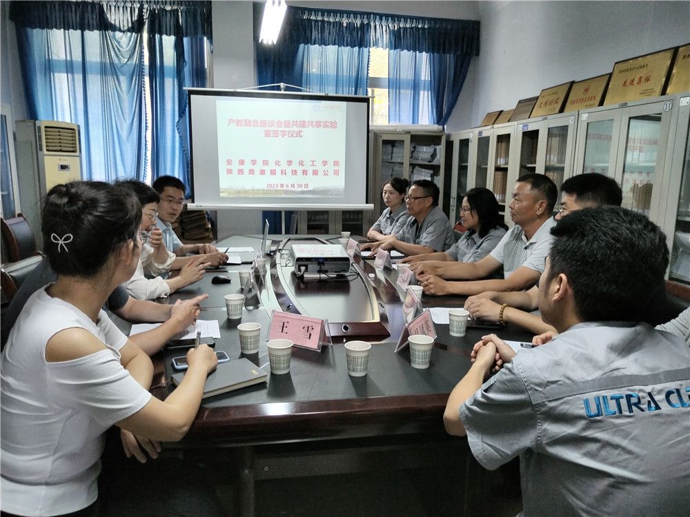 6月30日下午,陕西鼎澈膜科技有限公司董事长于海燕、总经理朱加生等一行6人来金沙集团wwW3354CC进行共建共享实验室签约暨产教融合洽谈,院长柳林、副院长袁光辉,新材料平台部分成员参加了本次活动。