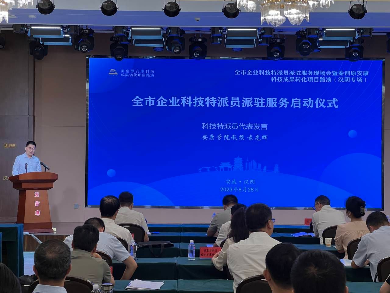 8月28日,由安康市人民政府主办,安康市科学技术局、汉阴县人民政府承办的全市企业科技特派员派驻服务现场会暨秦创原安康科技成果转化项目路演(汉阴专场)活动在汉阴县举办。金沙集团wwW3354CC袁光辉老师作为企业科技特派员代表进行了现场交流发言。
