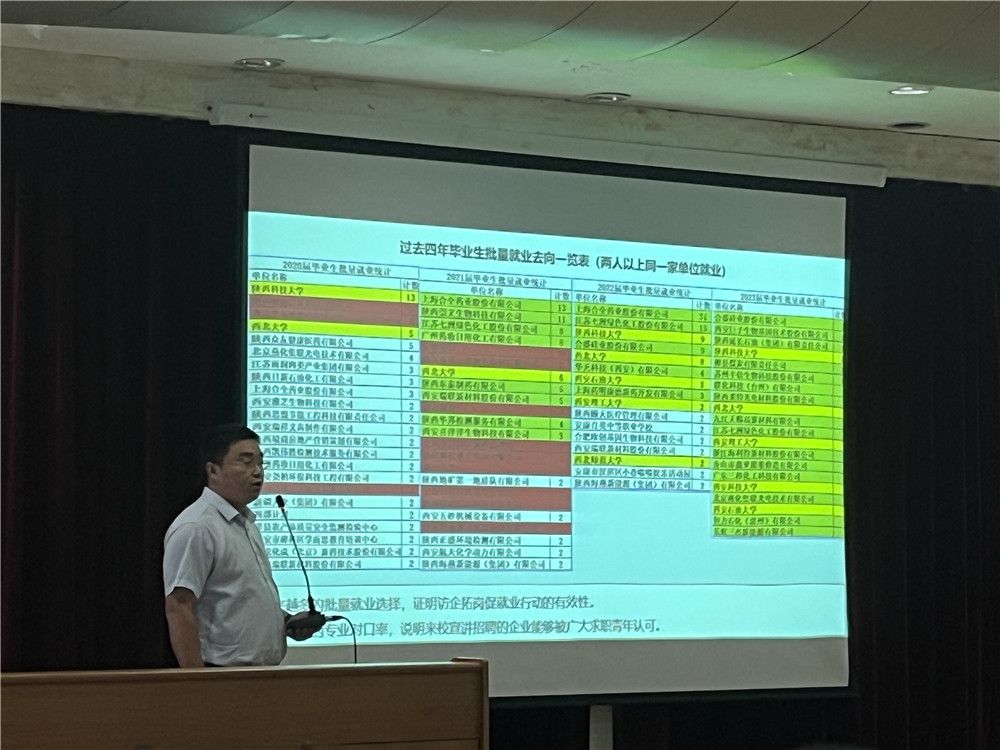 会上,辅导员于正豪结合化工行业发展情况和金沙集团wwW3354CC2020-2023年实习+就业工作的相关数据,进行了深入浅出的解读。他指出,金沙集团wwW3354CC专业对口就业占比逐年提高,越来越多的毕业生认可专业发展方向,并通过校园招聘会,找到合适自己的就业岗位。他建议同学们要树立正确的就业观念,把握好校园招聘的机会,找到适合自己的工作。