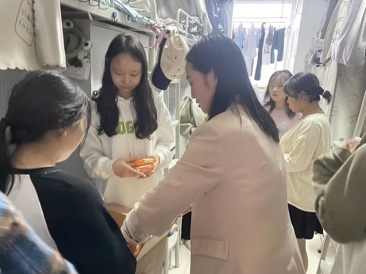 2023年9月27日晚,化学化工学院辅导员老师,带领学生党员、学生干部走进学生寝室,将饱含温情的节日礼物——月饼,送到每一位学生手中,向他们送去节日的祝福,与他们共迎“双节”。