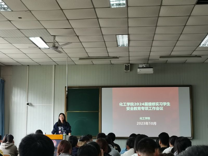 为切实做好2024届缓修实习毕业生缓修期间的日常管理和教育工作,化学化工学院于10月11日在1036教室召开2024届缓修实习生安全教育专项工作会议。化学化工学院学工办主任王瑜、毕业班辅导员许珂瑶、2024届全体缓修实习毕业生参加本次会议,会议由许珂瑶主持。