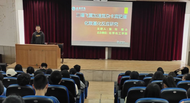 10月27日下午,金沙集团wwW3354CC教师张刊博士在江南校区1号教学楼六楼报告厅开展了题为《三嗪飞翼加速氮杂卡宾钯催化羰基化反应研究》的学术讲座,化学化工学院部分师生参加了此次报告会。