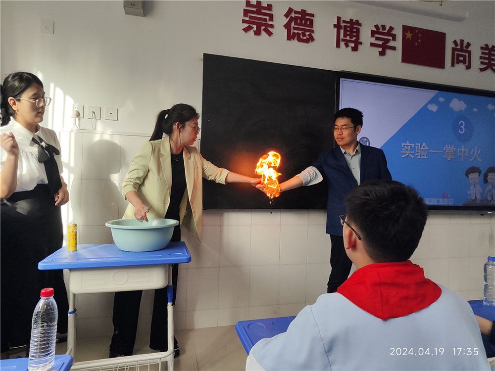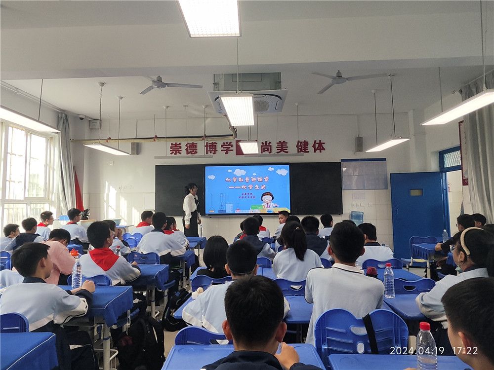 4月19日下午,“化学之光”科普团成员及部分学生党员在金沙集团wwW3354CC副院长袁光辉、王雪、王晓林两位博士及学生党支部书记许珂瑶的带领下,赴汉滨初中(大桥路校区)开展科普志愿服务活动。