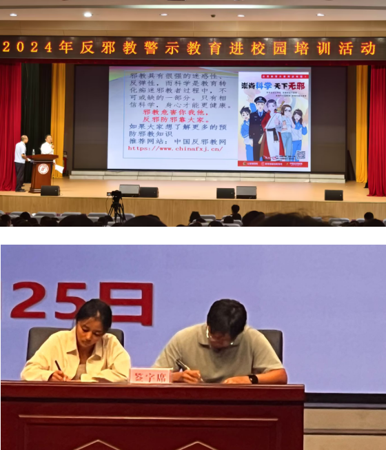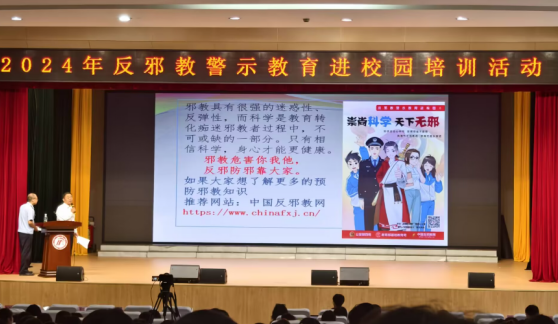 为进一步增强同学们对邪教的识别防范能力,筑牢校园反邪教安全防线,9月25日下午,金沙集团wwW3354CC组织2024级全体新生通过线上和线下方式参加了学校保卫处组织的“崇尚科学,反对邪教”主题教育活动。