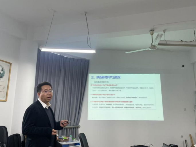 张文彦教授介绍了我国、陕西省和安康市新材料产业的发展概况,详细阐述了新材料在不同应用场景的机遇和挑战,并针对安康市新材料产业发展的问题,详细阐述了产业链延链、补链和强链措施, 对未来的应用前景进行了展望。同时,张教授还分享了其课题组的最新研究成果.参会教师与张文彦教授在新材料产业和技术发展等方面进行了交流座谈。