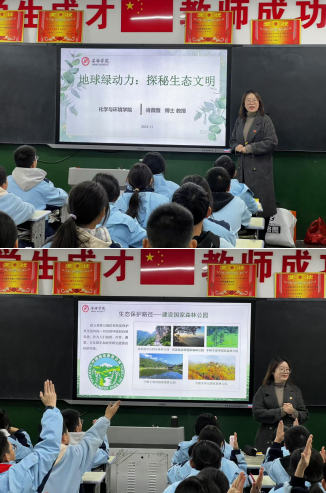 本次科普活动由学院党总支副书记肖薇薇博士主讲,围绕什么是生态文明、秦巴明珠生态安康、生活中的生态文明三部分内容,让同学们了解了了安康市独特的自然生态资源和近年来在生态文明建设方面取得的显著成就,通过贴近生活的实例深刻认识到生态文明并非遥不可及,而是与每个人的生活息息相关。在“生态标志连连看”互动游戏环节,同学们积极参与,争相抢答,现场气氛热烈而活跃。通过这次科普活动,在同学们心中播撒下了生态保护的种子,激励着同学们做生态文明的践行者,成为生态文明的宣传员,共同为地球增加绿色动力!