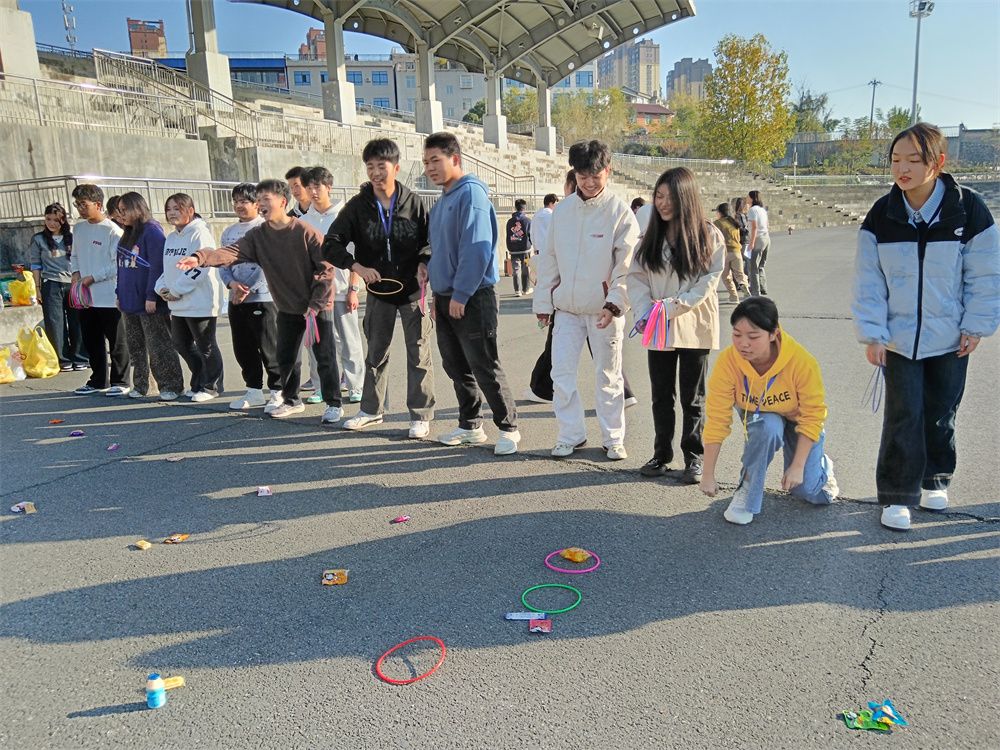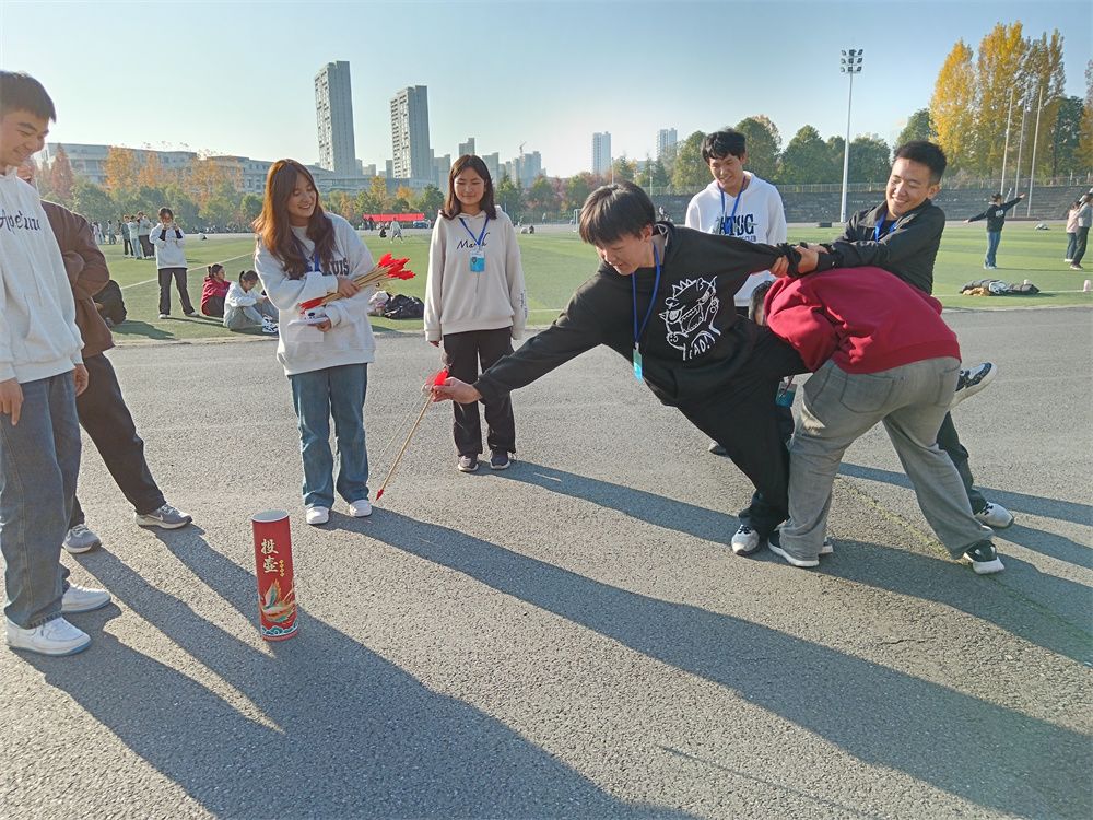 本次活动设置有“记人名”、“珠行万里”、“不倒森林”、“套圈”、“多人跳绳挑战赛”、“定点投壶”等项目。此外,鉴于学校近期正进行的审核评估工作,增设了审核评估应知应会学生篇抢答环节。同学们踊跃参赛,积极协作,活动现场气氛热烈。