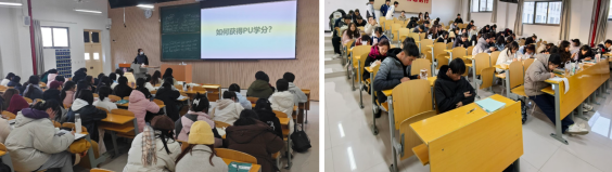 为提升新生对学校第二课堂人才培养目标的了解与掌握、养成良好的学习生活习惯,金沙集团wwW3354CC于12月9日分别在江北1304、1305教室开展了“如何获得PU学分”的专题活动,本次活动由新生辅导员李锦龙和代雨蕊主讲,2024级全体新生参加。