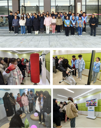 同学们在唐明宇老师的引导下,参观了心理健康教育中心的各个功能区域,包括心理咨询室、情绪宣泄室、放松训练室等。唐老师为同学们详细介绍了每个区域的功能和使用方法,使学生们对心理健康干预方式有了更直观的认识,让学生们了解常见的心理问题及其应对策略。同学们体验了如何通过击打沙袋释放压力,同学们尝试了冥想和深呼吸等放松技巧。